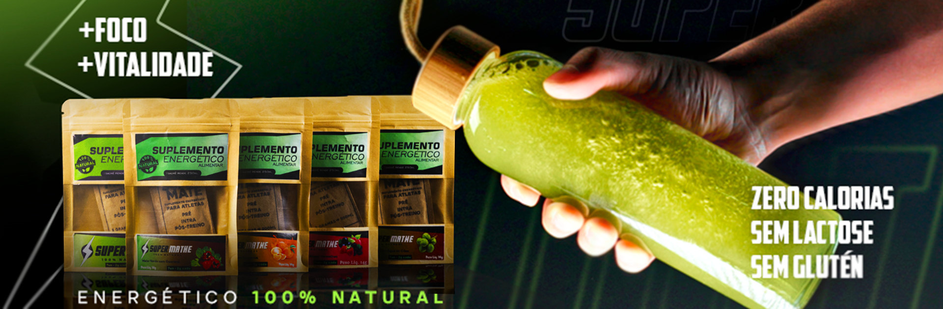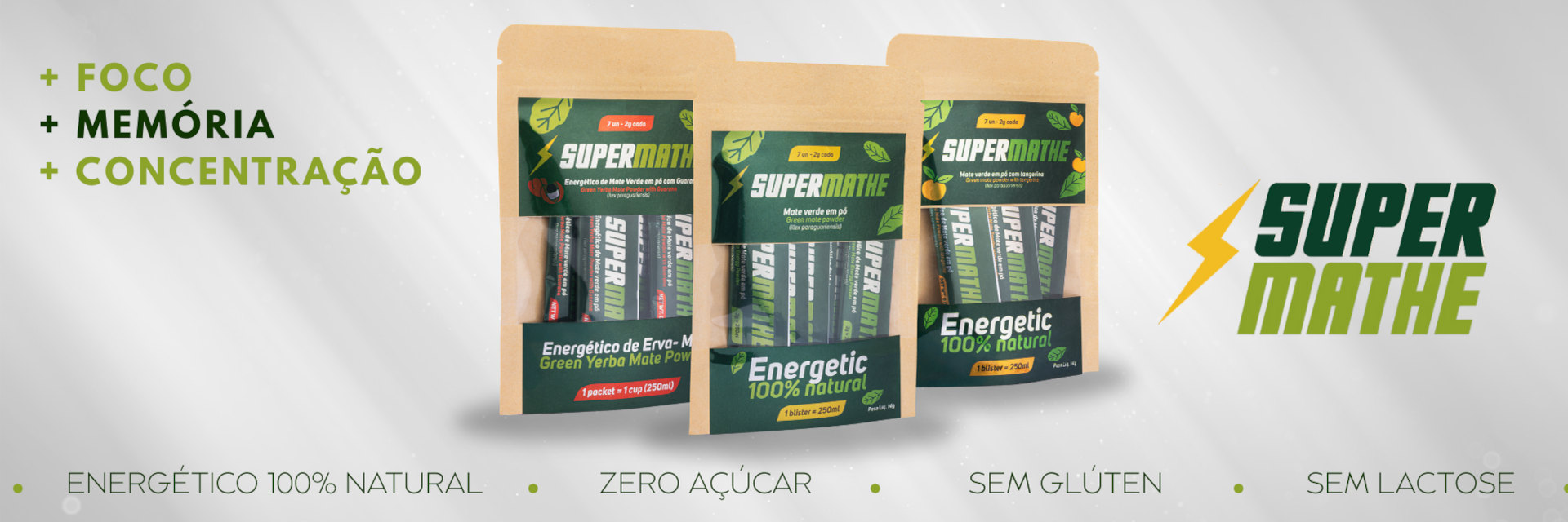 Energético 100% natural, zero calorias, sem glúten e sem lactose.